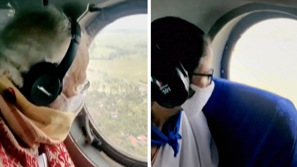 আকাশপথে দুর্গত এলাকা পরিদর্শন প্রধানমন্ত্রী নরেন্দ্র মোদী এবং মুখ্যমন্ত্রী মমতা বন্দ্যোপাধ্যায়ের। ছবি: টুইটার থেকে সংগৃহীত।