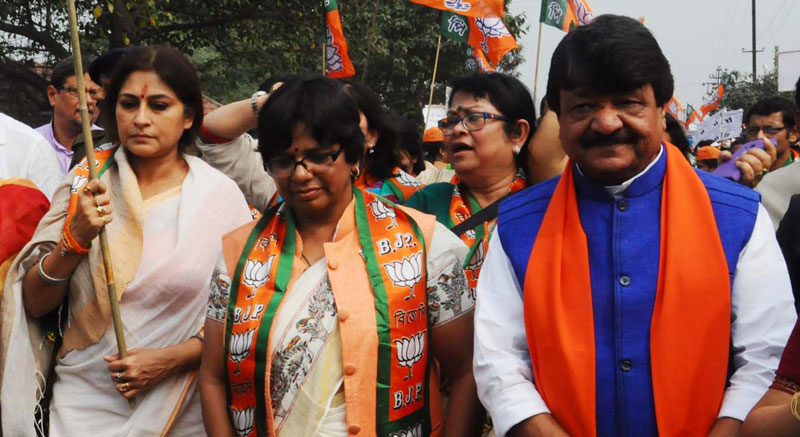 নকশালবাড়ি কাণ্ডের প্রেক্ষিতেই বৃহস্পতিবার কলকাতায় প্রতিবাদ কর্মসূচির ডাক দিয়েছিল বিজেপি। কেন্দ্রীয় পর্যবেক্ষক কৈলাস বিজয়বর্গীয়ই সে কর্মসূচিতে নেতৃত্ব দেন। কলেজ স্কোয়্যারের প্রতিবাদ সভা থেকে তিনি বলেন, ‘‘বাংলায় রোজ গণতন্ত্রের হত্যা হচ্ছে।’’ নকশালবাড়িতে গিয়ে যাঁদের বাড়িতে দুপুরে ভাত খেয়েছিলেন বিজেপি সভাপতি অমিত শাহ, সেই রাজু মাহালি-গীতা মাহালিকে জোর করে দলবদল করানো হয়েছে বলে বিজয়বর্গীয়ের অভিযোগ। তাঁদের অপহরণ করা হয়েছিল বলেও বিজয়বর্গীয়ের দাবি।