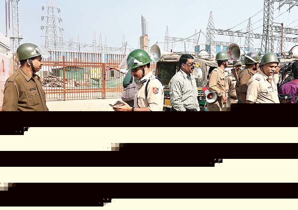 সাব স্টেশনের বাইরে পুলিশবাহিনী।ছবি: সামসুল হুদা।