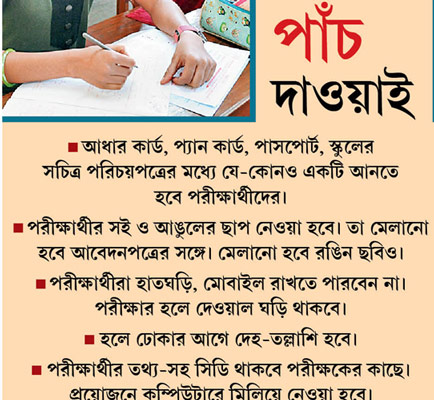 বোর্ড-প্রধান সজলবাবু বলেন, ‘‘কেউ যাতে অন্য কারও হয়ে পরীক্ষা দিতে না-পারেন, সেটা নিশ্চিত করতে এবং টোকাটুকি ঠেকাতে জনগণের পরামর্শ অনুযায়ী নতুন কিছু ব্যবস্থা নেওয়া হচ্ছে।’’ সঙ্গে আগেকার সব বন্দোবস্তও থাকছে।