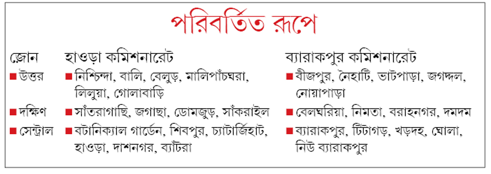 এর আগে ব্যারাকপুর শিল্পাঞ্চলের ১৪টি থানা জ়োন ১ এবং ২-তে বিভক্ত ছিল। এ দিনের নির্দেশিকায় সব থানাকে তিনটি জ়োনে ভাঙা হয়েছে। উত্তর জ়োনের দায়িত্বে রাখা হয়েছে যুগ্ম কমিশনার অজয় ঠাকুরকে। ব্যারাকপুর ডিভিশনের অতিরিক্ত ডিসিকে উত্তর জ়োনে একই পদে বহাল করা হয়েছে। কৃষ্ণনগরের অতিরিক্ত পুলিশ সুপার আমনদীপকে পদোন্নতি দিয়ে ব্যারাকপুরের ডিসি (সেন্ট্রাল)-এর দায়িত্ব দেওয়া হয়েছে।
