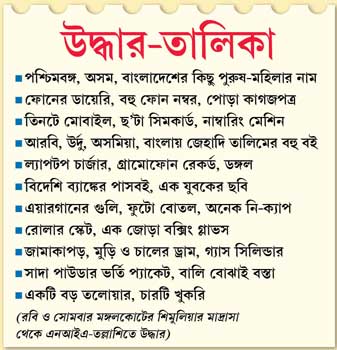 জেহাদের ডাক দেওয়া বেশ কিছু লিফলেট। আরবি, উর্দু, অসমিয়া বই। কিছু বাংলাও। তার একটি ‘ভাল মৃত্যুর উপায়’।