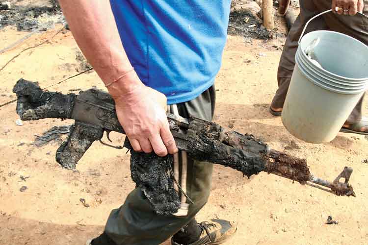 ২০১০ সালের ১৫ ফেব্রুয়ারি মাওবাদী হামলার পরে উদ্ধার হওয়া পোড়া বন্দুক। ফাইল চিত্র