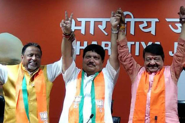 বঙ্গ বিজেপির পর্যবেক্ষক কৈলাস বিজয়বর্গীয়ের সঙ্গে মুকুল রায় ও অর্জুন সিংহ। দু’জনেই তৃণমূল থেকে বিজেপিতে যোগ দিয়েছেন। কিন্তু দু’জনেই অত্যন্ত গুরুত্বপূর্ণ এখন রাজ্য বিজেপির জন্য। —ফাইল চিত্র