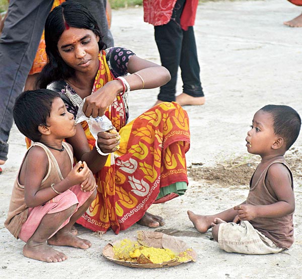 অসহায়: বালুরঘাটের পাগলিগঞ্জের আতিইরে ত্রাণ শিবির। ছবি: অমিত মোহান্ত