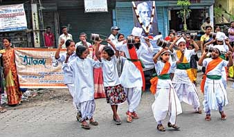 ও দিকে আনন্দ লহরী ও সেনপাড়া স্পোর্টিং এবং কালচারাল ক্লাবের সহযোগিতায় সকালে এক বর্ণাঢ্য শোভাযাত্রার আয়োজন করা হয়। প্রভাতী অনুষ্ঠানটি ছল শহরের থানার মোড়ে। প্রদীপ প্রজ্বলন করে সান্ধ্য অনুষ্ঠানের সূচনা করেন পবিত্র ভট্টাচার্য, গোপা ঘোষ পাল চৌধুরী। তিস্তা চরের কচিকাঁচাদের নিয়ে ‘আমরা সবাই রাজা’ শীর্ষক আলেখ্য পরিবেশিত হয়। গ্রন্থনা ও পরিচালনায় ছিলেন পাঞ্চালী রায়।1 সন্ধ্যা রায়ের কণ্ঠে ‘দাঁড়িয়ে আছ তুমি’ রবীন্দ্রসঙ্গীতটি সকলকে নাড়িয়ে দিয়ে যায়। মন ছুঁয়ে যায় রাজেশ সরকার ও মণিদীপা নন্দী বিশ্বাসের গানও। জেলা তথ্য ও সংস্কৃতি দফতরের উদ্যোগে এবং আর্য নাট্য সমাজের ব্যবস্থাপনায় দু’দিন ধরে পালিত হল রবীন্দ্রজন্মজয়ন্তী। রবীন্দ্রনাথের মূর্তিতে মাল্যদান করেন জেলা শাসক পৃথা সরকার ও আর্য নাট্য সমাজের সম্পাদক অমর সিংহ। একশো পঞ্চান্নটি মোমবাতি জ্বালিয়ে জন্মজয়ন্তীর শূভ সূচনা করা হয়। রবীন্দ্রসঙ্গীত পরিবেশন করেন নিরুপম ভট্টাচার্য ও বারীন সাহা। নৃত্যানুষ্ঠানে অংশ নেয় কল্পদীপ চারুকৃতি ও শতরূপা ইয়ুথ ডান্স গ্রুপ, নূপুর ডান্স অকাদেমি। ছিল প্রদোষ চৌধুরীর আবৃত্তি। সমবেত গানে অংশ নেয় ‘রেওয়াজ’ ও ‘বন্দিশ’ সংস্থার সদস্যরা। সমগ্র অনুষ্ঠানটি সঞ্চালনা করেন মানস ভৌমিক।