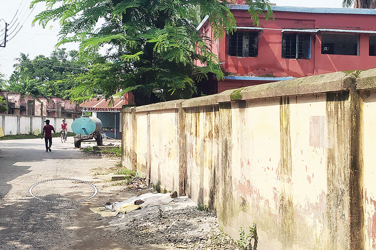 অকুস্থল: হাসপাতালের পিছনে স্কুলের পাশের রাস্তা। প্রত্যক্ষদর্শীরা জানালেন, এই গলিতেই গুলি করা হয় ওই তরুণীকে।— নিজস্ব চিত্র