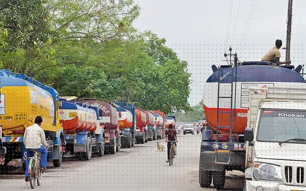 এনজেপি এলাকায় দাড়িয়ে আছে তেলের ট্যাঙ্কার।