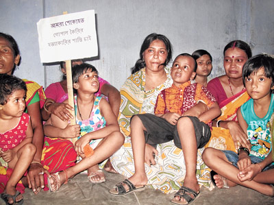 অবস্থান বিক্ষোভ করলেন মৃতের পরিবার ও পড়শিরা। বৃহস্পতিবার। নিহতের স্ত্রী রত্না দেবী দুই নাবালক