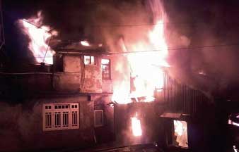 আগুনে ভস্মীভূত হল দার্জিলিঙের পাউন্ড রোডের একটি চারতলা বাড়ি। আংশিক ক্ষতিগ্রস্ত হয়েছে পাশের দু’টি বাড়িও। মঙ্গলবার রাত সাড়ে ১০টা নাগাদ পাউন্ড রোডের ওই চারতলা বাড়িতে আগুন লাগে। অন্তত দু’ঘণ্টা ধরে বাড়ির একতলা থেকে চারতলা পর্যন্ত জ্বলতে দেখা যায়। ওই বাড়িতে ৯টি পরিবার থাকত। ক্ষতিগ্রস্ত পরিবারের সদস্যদের এলাকার একটি কমিউনিটি হলে রাখা হয়েছে। দমকল সূত্রে জানানো হয়েছে, আগুন লেগে বাড়িতে মজুত কয়েকটি গ্যাস সিলিন্ডার ফেটে যাওয়ায় ক্ষয়ক্ষতি বেড়েছে। দুই মহিলা-সহ ৫ জন জখম হয়েছেন। জখম অংশু গজমের, লালসিংহ গজমের, সুনীল প্রসাদ, পুজা প্রসাদ এবং আদর্শ প্রসাদকে দার্জিলিং জেলা হাসপাতালে ভর্তি করানো হয়েছে। দার্জিলিং জেলা হাসপাতালের সুপার সৈকত প্রধান বলেন, “প্রত্যেকেরই শরীরের ২০ থেকে ২৫ ভাগ পুড়ে গিয়েছে। যদিও সকলেরই পরিস্থিতি স্থিতিশীল।’’ দমকলের তিনটি ইঞ্জিন গিয়ে আড়াই ঘণ্টার চেষ্টায় আগুন আয়ত্তে আনে। তবে পুরোপুরি আগুন নিভতে ভোর হয়ে যায়। রাত দেড়টা নাগদ আগুন নিয়ন্ত্রণে এলেও, বাড়ির ভিতর থেকে ক্রমাগত কালো ধোঁয়া বেরোতে থাকায় দমকল কর্মীরাও জল দিয়ে আগুন নেভানোর কাজ চালিয়ে যান। দমকলের দার্জিলিং কেন্দ্রের দায়িত্বপ্রাপ্ত আধিকারিক জিকে মুখিয়া বলেন, “রাত দেড়টা নাগাদ আগুন নিয়ন্ত্রণে আসে। তবে ঠিক কী কারণে, কোথা থেকে আগুন লাগল তা এখনও নিশ্চিত করে বলা সম্ভব নয়।” জখম রামসিংহ গজমের বলেন, “সবেমাত্র ঘুমোতে যাচ্ছিলাম। পড়শিরা আগুন দেখে চিত্‌কার করতে থাকে। বাবা এবং মেয়েকে নিয়ে পালিয়ে আসার চেষ্টা করি। একটি গ্যাস সিলিন্ডার ফেটে ওরা জখম হয়েছেন।” পরিবার সূত্রে জানা গিয়েছে, রামসিংহের কিশোরী মেয়ে অংশু, বাবা ৮৬ বছরের লালসিংহ জখম হয়েছেন। এ ছাড়াও জখম হয়েছেন।