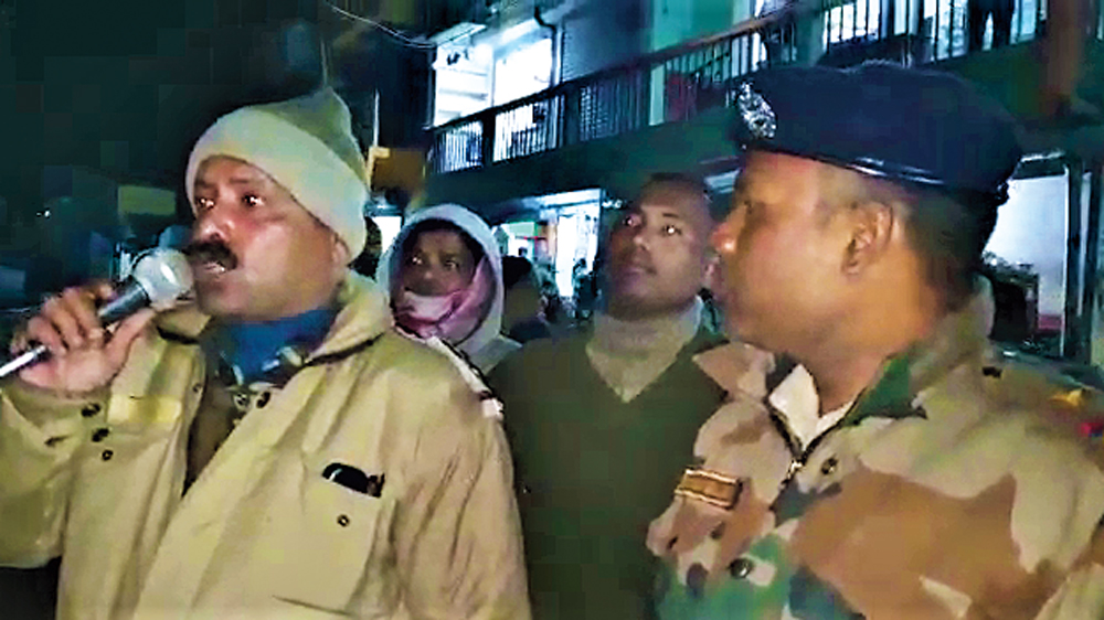 মাইকে প্রচার করছে পুলিশ। নিজস্ব চিত্র