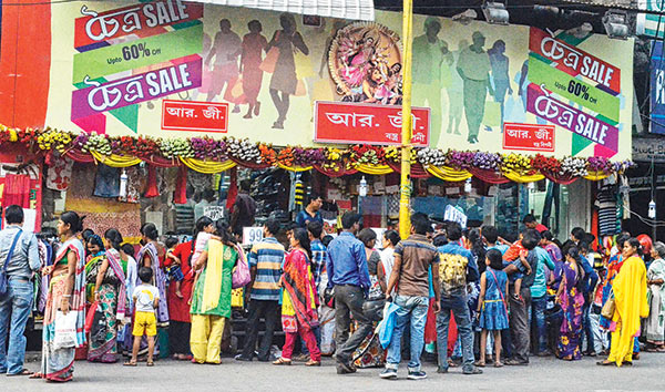 লাইনবাজার, নিউ মার্কেট, সুদর্শনপুর, মোহনবাটী, বিদ্রোহী মোড় এলাকার বিভিন্ন পোশাকের দোকানের সামনে অস্থায়ী শিবির। কেউ ২০ শতাংশ দিলে পাশের জন্য ৩০ শতাংশ ছাড় দিচ্ছেন। কেউ আবার এক লপ্তে ৬০ শতাংশ ছাড় দেওয়া হচ্ছে বলে হাঁক দিচ্ছেন। রেল কলোনি, সুভাষগঞ্জ ও মোহনবাটী এলাকাতেও রাস্তার ধারে বসে বিক্রি চলছে। শপিং মলই বা পিছিয়ে থাকে কেন! রায়গঞ্জের দেহশ্রী মোড়, নিশীথ সরণি ও শিলিগুড়িমোড় এলাকায় একাধিক শপিং মলেও পোশাকের দামে ১০ থেকে ২৫ শতাংশ ছাড়ে সেল দেওয়া হচ্ছে। নিউ মার্কেট এলাকার পোশাক ব্যবসায়ী রঞ্জন ঘোষের দাবি, এ বছর চাষিরা আলুর দাম না পাওয়ায় গোড়ায় সেলের বাজারে ভিড় ছিল না। এক সপ্তাহ আগে থেকে সেল জমে।