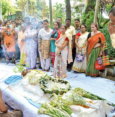 বেলা ১০ টার পর বাড়ি থেকে শবযাত্রা শুরু হয়। উদয়ন সমিতির মাঠে খোলা ট্রাকের উপর সাদা কাপড় বিছিয়ে মৃতদেহ রাখা ছিল। শবযাত্রা শুরু হলে হেঁটে, বাইকে অংশ নেন অনেকে। প্রথমে যাওয়া হয়, যেখানে তিনি আড্ডা দিতেন, সেই মিষ্টির দোকানে।