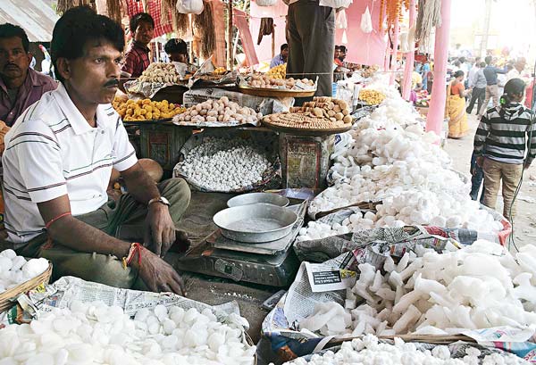 অন্যদিকে পুজোর সামগ্রী বিক্রেতা থেকে হোটেল রেস্টুরেন্ট বা বড় দোকানিরা খুচরোর সমস্যা শুরুতেই টের পাচ্ছেন। মালদহের বাসিন্দা নির্মল মাহাতো দীর্ঘদিন ধরে বোল্লামেলায় ভেলপুরি, ঘুগনি, মোগলাইয়ের মতো খাবারের দোকান সাজিয়ে বসেন। তিনি জানান, সোমবার ভাঙা মেলা নিয়ে চারদিনে বোল্লা মেলায় গড়ে প্রায় ৯০ হাজার টাকার ব্যবসা হয়। কিন্তু এবারে ৫০০ ও হাজারের নোট বাতিলের জেরে চিন্তায় আছেন বলে জানান তিনি। খুচরো সমস্যায় বিক্রিবাট্টা যে কমবে, তার আঁচ ইতিমধ্যে পাচ্ছেন পুজোর সামগ্রী বিক্রেতা সূরজ ঘোষ। তিনি বলেন, ‘‘সকাল থেকে দুপুর পর্যন্ত গতবার যে রকম বিক্রিবাট্টা হয়েছিল। এখনও পর্যন্ত তা অনেক কম।’’ অবশ্য ব্যবসায়ীদের একাংশের বক্তব্য, নোট বাতিলের প্রভাব মেলার ব্যবসায়ে কতটা পড়বে প্রথমদিন গেলে তা স্পষ্ট হবে। এ দিন মেলায় বোল্লাকালীর কাছে মানতের জন্য উৎসর্গ করা পাঁঠার বেচাকেনা পুরনো ৫০০ ও হাজার টাকায় হয়েছে। রামপুরের চঞ্চল রায় বলেন, ‘‘এ দিন ৪৮০০ টাকায় একটি পাঁঠা কেনায় বিক্রেতা তাঁকে ৫০০ টাকার পুরানো নোট দিয়েছেন।’’ কিন্তু পুজোর অন্য সামগ্রী তিনি ওই পুরানো নোটে কিনতে পারেননি বলে জানান তিনি। খুচরোর অভাবে দোকানিরা পুরানো ৫০০টাকার নোট নিতে চাননি বলে জানান তিনি।