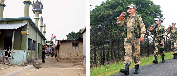 এপারে ভারতভুক্ত হাড়িপুকুর। লাগোয়া ওপার বাংলার বাগমারা গ্রাম। মাঝখানে ফুট দেড়েকের ত্রিকোণ আকৃতির সীমান্ত পিলার ছাড়া দক্ষিণ দিনাজপুরের হিলি সীমান্তের ওই দু’টি এলাকা মিলেমিশে একাকার। ওই দু’টি গ্রামের মূল রাস্তার ধারে বাগমারা এলাকার মধ্যে মসজিদটি ইদ উৎসবে সেজে উঠেছে। কাঁটাতারের বেড়ার বাইরে বাংলাদেশের দিকে উন্মুক্ত হাড়িপুকুরের বাসিন্দারাও তাই ইদের নমাজ পড়তে মাত্র দুই ধাপ দূরত্বের ওই মসজিদে সামিল হতে চলেছেন। হাড়িপুকুরের বাসিন্দা মজিবর মিঁয়ার কথায়, ‘‘ওরা মসজিদের জন্য জায়গা দিয়েছে। আমরা ইট দিয়ে সাহায্য করেছি। মসজিদের বৈদ্যুতিক আলোয় হাড়িপুকুরের রাস্তা ভরে ওঠে।’’ ওই এলাকা থেকে প্রায় দেড়শো গজ দূরত্বে কাঁটাতারের বেড়া। মূল হিলি বাজার, ব্লক কার্যালয় থেকে স্কুল, হাসপাতালে যাতায়াতের সময় বিএসএফের কড়া পাহারার মুখে পড়তে হয় বাসিন্দাদের। এরপর গ্রামে ঢুকে গেলে সব একাকার। আত্মীয়তা থেকে বিয়ে, পরবে মিষ্টি উপহার দেওয়াও চলে। তাই আকাশে চাঁদ দেখার অপেক্ষায় বেড়াহীন হিলি সীমান্তের ভারত-বাংলাদেশভুক্ত ওই দুই এলাকার বাসিন্দারা। তবে হাড়িপুকুরের মতো খুশির ইদে আত্মীয় ও পড়শিদের সঙ্গে রমজান মাসের শেষে ‘চাঁদ মুবারক’ জানানোর উপায় দেখছেন না হিলি সীমান্তেরই উঁচু গোবিন্দপুরের বাসিন্দারা। সম্প্রতি ঢাকায় জঙ্গি হামলার ঘটনায় সীমান্তে কড়কড়ি বাড়ায় কাঁটাতারের গেট পেরিয়ে এপার থেকে ওপারের আত্মীয়দের চোখের দেখা ও উপহার বিনিময়ের প্রতি বছরের ঐতিহ্যে এবারে ছেদ পড়তে চলেছে বলে হতাশ প্রবীণ আলি সাহেব। তিনি বলেন, ‘‘ইদের দিনে আত্মীয় ও পরিচিতের সঙ্গে শুভেচ্ছা বিনিময়, মিষ্টি দেওয়া নেওয়ার আশায় আমরা দিন গুণি। এ বারে বেড়ার গেট পেরিয়ে সদর রাস্তা ছাড়া অন্য পথে যাওয়ার উপর কড়াকড়ি হয়েছে।’’ হিলি সীমান্তের কাঁটাতারহীন ১৪টি এলাকা জুড়ে কড়া পাহারায় দুদেশের সীমান্ত রক্ষীরা। খুশির ইদে তাই অনেকের মুখভার।