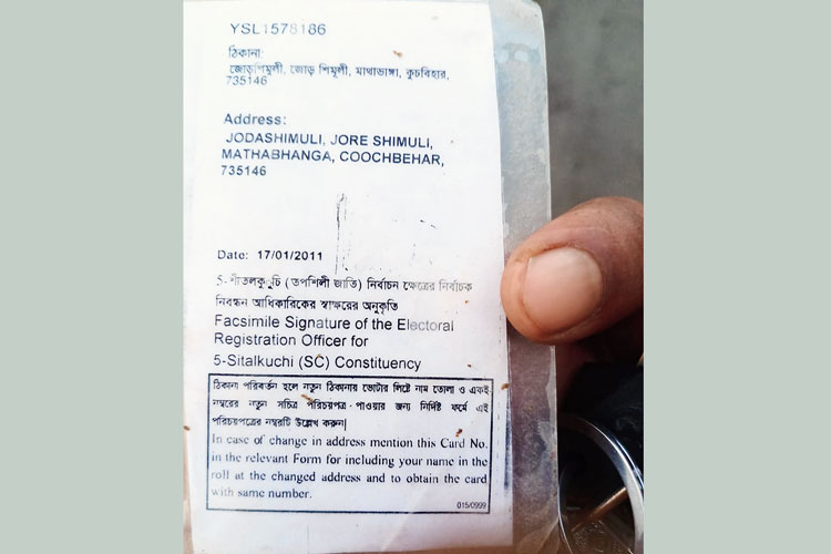 ব্যাগ থেকে মিলেছে এই ভোটার কার্ডটি। —নিজস্ব চিত্র।