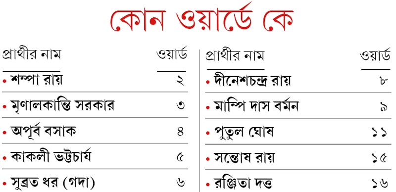 সিপিএমে স্থানীয় নেতৃত্ব অবশ্য বলছেন, তাঁরা প্রার্থী বাছাইয়ের ক্ষেত্রে সতর্ক। এই ওয়ার্ডগুলিতে একাধিক প্রার্থিপদ প্রত্যাশী রয়েছেন। তাঁদের মধ্যে থেকে সঠিক লোকটিকে বেছে নিতে কিছু সময় লাগছে। অচিরেই বাকি ওয়ার্ডগুলিতেও প্রার্থীর নাম ঘোষণা করা হবে।