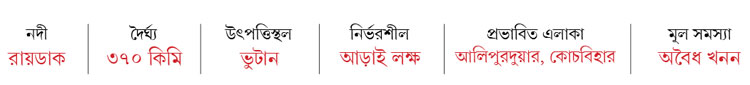 এ ভাবে রায়ডাকের উপর নির্ভর করে জীবন চালান ভুটান সীমান্তের তুরতুরিখণ্ড থেকে তুফানগঞ্জের বাংলাদেশ সীমান্ত পর্যন্ত অন্তত এক লক্ষ মানুষ। পরোক্ষে সংখ্যাটা দ্বিগুণেরও বেশি।