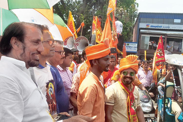 ইসলামপুরে রামনবমীর মিছিলে কানাইয়ালাল। নিজস্ব চিত্র