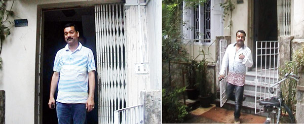 গৌতম দেবের বাড়ি থেকে বেরোচ্ছেন জয়দীপ নন্দী ও প্রসেনজিৎ রায়। — নিজস্ব চিত্র।