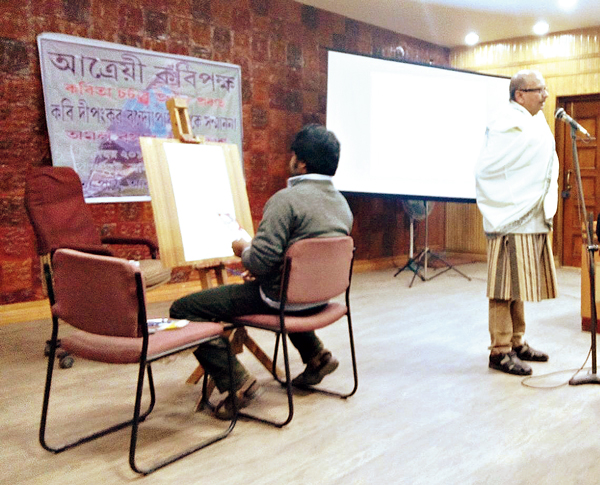 অন্য রকম ভাবে ইংরেজি নববর্ষ উদযাপন করল নিখিল ভারত বঙ্গ সাহিত্য সম্মেলন, জলপাইগুড়ি শাখা। কথায়, কবিতায়, স্মৃতিচারণায় জমে উঠেছিল বছরের প্রথম দিনের সন্ধে। বিশ্বায়নের যুগে সাংস্কৃতিক বিভাজনের রেখা স্বাভাবিক ভাবেই ভেঙে যাচ্ছে। এ ভাবেই বৈঠকী আসরের কথামুখ তৈরি করেছেন ড. আনন্দগোপাল ঘোষ। শৈশবের ১ জানুয়ারির স্মৃতিচারণায় ডুব দেন কবি সম্পাদক তনুশ্রী পাল। স্বরচিত কবিতা পাঠ করেন বিকাশ বন্দ্যোপাধ্যায়, সন্তোষ চক্রবর্তী, মৌসুমী চট্টোপাধ্যায়, চিত্রা পাল ও কেয়া সরকার-সহ আরও অনেকে। বর্নি বন্দ্যোপাধ্যায়ের আবৃত্তি অন্য আবহ রচনা করে। আধুনিক ও বাউল গানে আসর জমিয়ে দেন সীমা চৌধুরী।