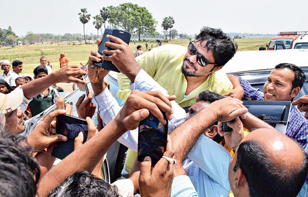 বালুরঘাটে অনুরাগীদের সঙ্গে নিজস্বী বাবুল সুপ্রিয়র।—নিজস্ব চিত্র