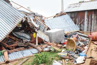 কোথাও কাঁচাবাড়ির টিনের চালা উড়ে গিয়েছে। আবার কোথাও গাছ ও বিদ্যুতের খুঁটি উপড়ে রাস্তা বন্ধ হয়ে গিয়েছে। বিভিন্ন এলাকায় টেলিফোন ও বিদ্যুতের তার ছিড়ে যাওয়ায় ল্যান্ডফোন ও ইন্টারনেটের পরিষেবা বিপর্যস্ত হয়ে পড়েছে। বিঘের পর বিঘে জমির ধান ও ভুট্টাগাছ শুয়ে পড়েছে। মঙ্গলবার রাত সাড়ে ১০টা থেকে আধঘন্টা ধরে চলা ঘূর্ণিঝড় ও শিলাবৃষ্টির তান্ডবে এভাবেই ক্ষতিগ্রস্থ হয়েছে উত্তর দিনাজপুরের রায়গঞ্জ, কালিয়াগঞ্জ, হেমতাবাদ, ইটাহার ও করণদিঘি ব্লকের বিস্তীর্ণ এলাকা। ফলে জনজীবন বিপর্যস্ত হয়ে পড়েছে ওই পাঁচটি ব্লকের বিভিন্ন গ্রাম পঞ্চায়েত এলাকায়। বিএসএনএল সূত্রের খবর, ঝড়ের তাণ্ডবে ওই পাঁচটি ব্লকের একাধিক জায়গায় ল্যান্ডফোনের তার, টেলিফোনের খুঁটি উপড়ে যাওয়ায় পাশাপাশি একাধিক মোবাইল টাওয়ারে যান্ত্রিক ত্রুটি দেখা দেওয়ায় রাত থেকেই জেলায় বিএসএনএলের মোবাইল পরিষেবা বিপর্যস্ত হয়ে পড়ে। গত মঙ্গলবার থেকে বিএসএনএলের সমস্ত স্তরের কর্মীরা দুদিনের ধর্মঘট শুরু করেছেন। ফলে বুধবার বিএসএনএলের কর্মীরা পরিষেবা স্বাভাবিক করার কাজে নামেননি।