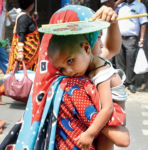 বেলা আড়াইটেতেই তীব্র রোদ শিলিগুড়িতে। শুক্রবার। ছবি: বিশ্বরূপ বসাক
