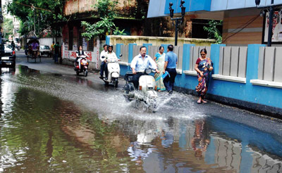 রবিবার রাত থেকে টানা বৃষ্টিতে জলমগ্ন শিলিগুড়ি তথ্যকেন্দ্র লাগোয়া রাস্তা। সোমবার সন্দীপ পালের তোলা ছবি।