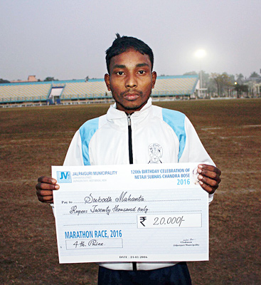 এমনই পরিস্থিতির সাক্ষী থাকল জলপাইগুড়ি পুরসভা আয়োজিত ম্যারাথন প্রতিযোগিতা। প্রতিযোগিতায় প্রথম যিনি সেই রাজেশ শায়ের বাবা শ্রমিকের কাজ করেন। দ্বিতীয় দুলু সরকার এবং তৃতীয় হাসিবুল হকের অবস্থাও একই রকম। চতুর্থ সুবোধ মহন্তের মা ক্যান্সারে আক্রান্ত। পুরস্কারের ২০ হাজার এখন মায়ের ওষুধ ও পথ্য কেনার সম্বল।