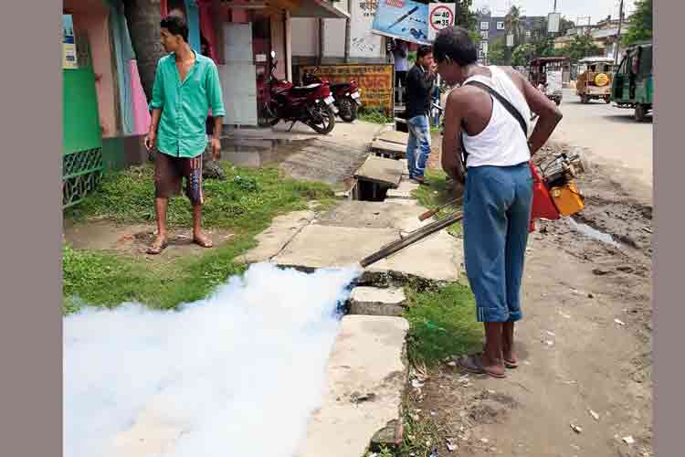 রায়গঞ্জ শহরে মশা মারতে ধোঁয়া ছড়ানো হচ্ছে। নিজস্ব চিত্র