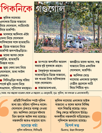 ‘পিকনিক-স্পট’-এ সর্বত্র যে বাড়তি নজর রাখা জরুরি, তা মানছেন পুলিশের উত্তরবঙ্গের প্রথম সারির অফিসারদের অনেকেই। কারণ, তিস্তা-মহানন্দা থেকে কুলিক নদীর ধারে সর্বত্রই পিকনিককে কেন্দ্র করে গোলমাল, সংঘর্ষ ঘটে।