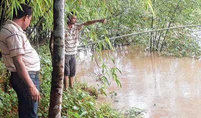 পশ্চিম টারি গ্রামে নদীর ভাঙন দেখাচ্ছেন বাসিন্দা। —নিজস্ব চিত্র।