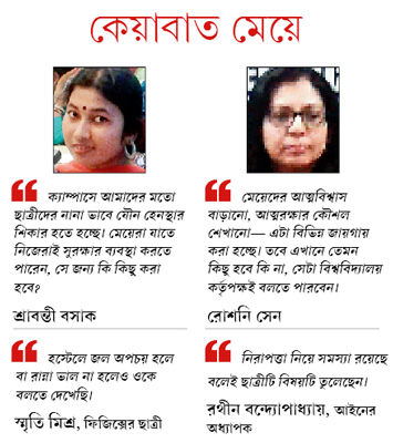 বারবার বলার পরেও উত্তরবঙ্গ বিশ্ববিদ্যালয়ের ক্যাম্পাসে সিসিটিভি ক্যামেরা বসানো বা সীমানা পাঁচিল দিয়ে বহিরাগতদের প্রবেশ আটকাতে ব্যবস্থা নেওয়া হয়নি। ক্যাম্পাসের মধ্যে একাধিক ছাত্রীর শ্লীলতাহানির ঘটনার পরেও কেন কর্তৃপক্ষ উদাসীন, তা নিয়ে অভিযোগ রয়েইছে। ক্ষোভও জমছিল পড়ুয়া, শিক্ষক, শিক্ষাকর্মী মহলে। বুধবার শ্রাবন্তী বসাকের কথায় সেই জমে থাকা বাষ্পরই কিছুটা বেরিয়ে এল।