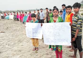 আত্রেয়ীকে বাঁচাতে পথে নামল বালুরঘাটের স্কুল পড়ুয়ারা। নদীর শুকনো চরে ক্রিকেট খেলে, মুকাভিনয় করে এবং আবৃত্তি ও ছড়া বলে অভিনব প্রতিবাদ জানালো তাঁরা। শুকিয়ে যাওয়া নদীর হাঁটু জলে সার বেধে নৌকো ভাসিয়ে আত্রেয়ীর বেহাল অবস্থা নিয়ে মানুষকে সচেতন করে তারা।