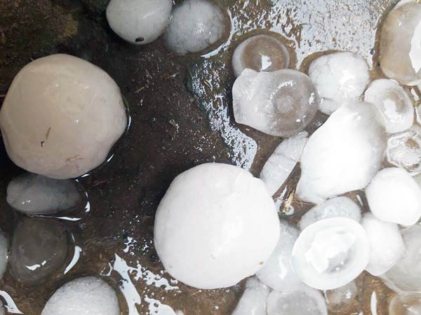 এ দিন দুপুর সাড়ে তিনটে নাগাদ হঠাৎ রোদের মধ্যেই শিল পড়তে শুরু করে। আড়াইডাঙ্গা এলাকায় প্রথমে ঝিরঝিরে বৃষ্টির সঙ্গে ছোট শিল পড়লেও পরে রোদ উঠে যায়। তারপর চড়া রোদের মধ্যেই বড় আকারের শিল পড়তে শুরু করে। আতঙ্কে পথঘাট ছেড়ে মানুষজন নিরাপদ আশ্রয়ের দিকে পালাতে শুরু করেন। শিলের তাণ্ডবে ক্ষতিগ্রস্ত হয়েছে টালি ও টিনেরও অসংখ্য বাড়ি।