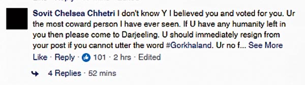 শনিবার সন্ধ্যায় সাংসদ পাহাড়ের পরিস্থিতির জন্য রাজ্য সরকারকে দায়ী করে ফেসবুকে একটি পোস্ট করেন। সেখানেই কেউ কেই এই পরিস্থিতিতে তিনি পাহাড়ে একবারও কেন যাননি সেই প্রশ্ন তোলেন। শনিবারের ফেসবুক পোস্টে অহলুওয়ালিয়া মুখ্যমন্ত্রীকে পাহাড়ে শান্তি-শৃঙ্খলা বজায় রাখার জন্য আবেদন করেন। গুলিতে মৃত্যুর একাধিক ঘটনার সিবিআই তদন্ত, ইন্টারনেট পরিষেবা চালু করা, রেশন ব্যবস্থা স্বাভাবিক করার আর্জিও জানান তিনি। এর পরেই তা নিয়ে তোলপাড় হয় ফেসবুকে। কয়েকশো ‘কমেন্টে’, অনেকেই সাংসদের ইস্তফার দাবি তোলেন। অনেকে আবার অনেকে বিজেপিকে লোকসভায় বিজেপিকে লোকসভায় কেন ভোট দিলাম তা বলে সোশ্যাল মিডিয়ায় ক্ষোভ জানান।