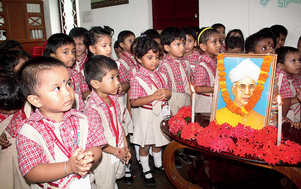 সোমবার দিল্লিতে রাষ্ট্রপতি প্রণব মুখোপাধ্যায়ের হাত থেকে জাতীয় শিক্ষকের পুরস্কার নিচ্ছেন ওই স্কুলের ভারপ্রাপ্ত প্রধান শিক্ষক দেবব্রত মুখোপাধ্যায়। এ দিন সকাল থেকেই শুরু হয় উদ্যাপন। ক্লাসের শুরুতে পড়ুয়াদের মধ্যে চকোলেট বিলি করা হয়। পড়ুয়াদের জন্য মিড ডে মিলের শেষ পাতে বরাদ্দ ছিল একটি করে লাড্ডু। ছাত্রদের থালায় পরিবেশন করেন শিক্ষকেরাই। জেনকিন্স স্কুলের ভারপ্রাপ্ত সহকারী শিক্ষক রামচন্দ্র মণ্ডল বলেন, “ওঁর জাতীয় শিক্ষকের পুরস্কার প্রাপ্তিতে আমরা সকলে গর্বিত।’’ সোমবার শিক্ষক দিবসের দিনে স্কুলে ক্লাস করিয়েছে ছাত্ররাই। এটাই জেনকিন্সের অলিখিত রেওয়াজ। শিক্ষক শঙ্কর দত্ত বলেন, “তৃতীয় শ্রেণি থেকে দশম শ্রেণি পর্যন্ত আটটি ক্লাসের ষোলোটি বিভাগের রুটিন তৈরি করা হয়।’’ শিক্ষকের দায়িত্ব দেওয়া হয় একাদশ ও দ্বাদশ শ্রেণির পড়ুয়াদের। আচমকা ক্লাস চলার ফাঁকে চকোলেট নিয়ে স্কুল কর্মীরা হাজির হতেই হাসি ফোটে ছাত্রদের মুখে। এ দিনের ‘শিক্ষকে’রাও ক্লাস নিয়ে উৎসাহিত। এক দিনের ‘শিক্ষক’ অভিষেক রায়, সুজয় ঘোষরা বলে, ‘‘স্যারের মতো হতে চাই।’’ এ দিন ক্লাস নিয়ে সেই স্বপ্নই দেখে ওরা।