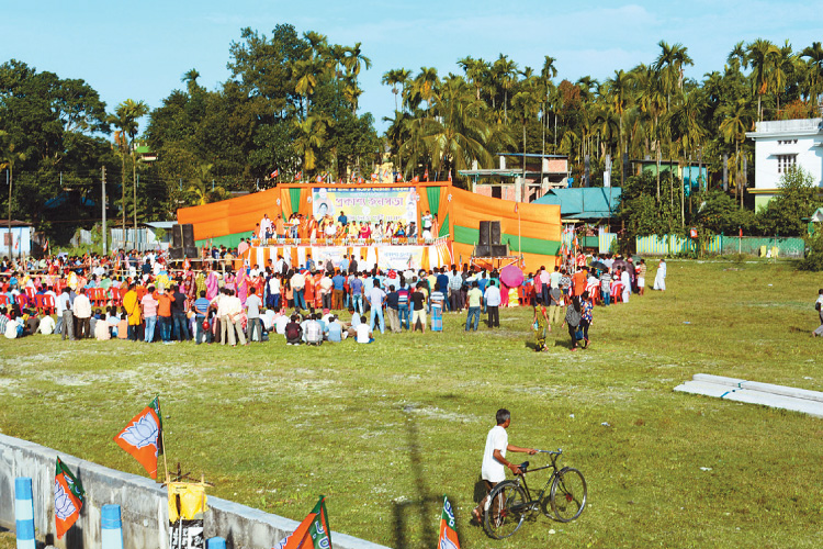 সভা চলাকালীন মাঠের অবস্থা। শুক্রবার। ছবি: নারায়ণ দে