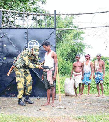 পাহারা-তল্লাশি বাড়লেও ছন্দপতন হয়নি হিলি সীমান্তে। দু’দেশের বহির্বাণিজ্য স্বাভাবিক রয়েছে। পাসপোর্ট ভিসা নিয়ে ইমিগ্রেশন চেকপোস্টের মাধ্যমে উভয় দেশের মানুষের যাতায়াত চালু রয়েছে। শনিবার থেকে হিলি সহ জেলার সীমান্ত এলাকায় বিএসএফ কড়া পাহারা ও নজরদারি চালাচ্ছে। হিলিতে বিএসএফের অতিরিক্ত জওয়ান ও অফিসার নামানো হয়েছে। এ দিন সকাল থেকে হিলির যে এলাকায় কাঁটাতার নেই সেই পূর্ব আপতোর, উজাল, হাড়িপুকুর, গোবিন্দপুর, দক্ষিণপাড়া, ঘাসুরিয়া সীমান্ত গ্রামে বিএসএফের তরফে একাধিক নাকা পয়েন্ট করে নজরদারি ও তল্লাশি চালাতে দেখা গিয়েছে। হিলি বাজার, ব্লক অফিস এবং হাসপাতাল মোড়ে পুলিশও মোতায়েন ছিল। এ দিন হিলি দিয়ে ১২০টি ট্রাক বাংলাদেশে গিয়ে পণ্য খালস করেছে। ওপার থেকে এপারে এসেছে কয়েক ট্রাক চিটে গুড়। স্থানীয় এক্সপোর্টার্স অ্যান্ড কাস্টমস ক্লিয়ারিং এজেন্ট সমিতি সূত্রে জানা গিয়েছে, হিলি দিয়ে রোজ গড়ে ১১লক্ষ ৭০ হাজার ডলার বহির্বাণিজ্য হয়। এ দিন সকালে বাংলাদেশ থেকে হিলি আন্তর্জাতিক চেকপোস্ট দিয়ে বালুরঘাটের একটি অনুষ্ঠানে যোগ দিতে আসেন আওয়ামি লিগের দিনাজপুর জেলার উপদেষ্টা সৈয়দ মোস্তাফিজুর রহমান, হিলি উপজেলা আওয়ামি লিগের সাধারণ সম্পাদক শাহিনুররেজা শহিন, জয়পুরহাট চেম্বার অব কমার্স ইন্ডাস্ট্রির সভাপতি মহম্মদ হাকিম মণ্ডল, হিলি বন্দর উন্নয়ন সমন্বয় পরিষদের সভাপতি আবুল কাসেম আজাদ এবং হিলি আমদানি রফতানিকারী গ্রুপের আহবায়ক মহম্মদ হারুনুর রশিদ। তাঁদের দাবি, ওপারে পরিস্থিতি এখন স্বাভাবিক। হিলি দিয়ে বহির্বাণিজ্য চালু রয়েছে। এদিন বিকেল ৩টা নাগাদ দলটি বাংলাদেশে ফিরে যান। বালুরঘাটের রফতানি বাণিজ্যের প্রতিনিধি বিকাশ মণ্ডল বলেন, ‘‘ইদ উপলক্ষে আগামী মঙ্গলবার, ৫ জুলাই থেকে হিলি চোকপোস্ট দিয়ে বহির্বাণিজ্য বন্ধ থাকবে। ইদের অনুষ্ঠান শেষ হলে ফের দু’দেশের মধ্যে আমদানি-রফতানি বাণিজ্য চালু হয়ে যাবে।’’