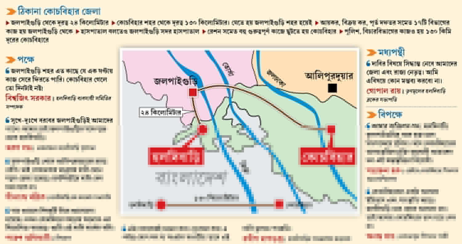 কোচবিহারের এই প্রান্তিক জনপদ থেকে তার জেলা সদরের ১৩০ কিমি। অথচ জলপাইগুড়ি জেলা সদর থেকে হলদিবাড়ি মোটে ২৪ কিমি। এই ব্লকের গ্রামে গ্রামে ৯০ ভাগ মানুষ জীবনে কোনও দিন কোচবিহার শহরে যাননি। সে শহর সম্পর্কে তাঁদের কোনও ধারণাও নেই। বরং কাজে অকাজে তাঁরা ঘরের কাছে জলপাইগুড়িতে যান সব সময়। বাসিন্দাদের তাই প্রশ্ন, তা হলে কোচবিহার জেলায় কেন থাকবে হলদিবাড়ি? কেন যুক্ত হবে না জলপাইগুড়ির সঙ্গে? খোঁজ নিলেন দেখলেন রাজা বন্দ্যোপাধ্যায়। আজ প্রথম পর্বকোচবিহারের এই প্রান্তিক জনপদ থেকে তার জেলা সদরের ১৩০ কিমি। অথচ জলপাইগুড়ি জেলা সদর থেকে হলদিবাড়ি মোটে ২৪ কিমি। এই ব্লকের গ্রামে গ্রামে ৯০ ভাগ মানুষ জীবনে কোনও দিন কোচবিহার শহরে যাননি। সে শহর সম্পর্কে তাঁদের কোনও ধারণাও নেই। বরং কাজে অকাজে তাঁরা ঘরের কাছে জলপাইগুড়িতে যান সব সময়। বাসিন্দাদের তাই প্রশ্ন, তা হলে কোচবিহার জেলায় কেন থাকবে হলদিবাড়ি? কেন যুক্ত হবে না জলপাইগুড়ির সঙ্গে? খোঁজ নিলেন দেখলেন রাজা বন্দ্যোপাধ্যায়। আজ প্রথম পর্ব
