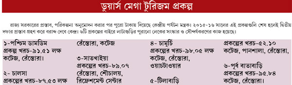 কোথাও জলাশয়কে ঘিরে গড়ে উঠেছে পর্যটন কেন্দ্র। কোথাও আবার পাহাড়ি টিলায়। কোথাও আবার নদী , চা বাগান ঘেরা পর্যটন কেন্দ্রের ভেতরেই সবজি, মুরগির চাষ। তা দিয়েই রান্নার আয়োজন। পুজোর আগে নানা স্বাদের এরকমই ১৭টি় পর্যটন কেন্দ্র খুলে দিচ্ছে রাজ্য পর্যটন দফতর। তাই প্রস্তুতি খতিয়ে দেখতে বৃহস্পতিবার দুদিনের ডুয়ার্স সফরে বেরিয়েছেন রাজ্যের পর্যটন মন্ত্রী গৌতম দেব। তিনি বলেন, ‘‘পুজোতে সকলেই নতুন কিছু চান। এবার তাই পর্যটকদের পুজোর উপহার তুলে দিতেই এতগুলো নতুন কেন্দ্র একযোগে খুলে দেওয়ার কথা ভাবা হয়েছে।’’