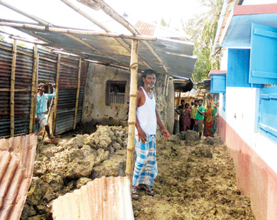 প্রবল বৃষ্টিতে মাটির দেওয়াল চাপা পড়ে মৃত্যু হল দুই শিশুকন্যার। দক্ষিণ দিনাজপুরের নানা জায়গাতেই বৃহস্পতিরবার রাতভর ব্যাপক বৃষ্টির জেরে জনজীবন বিপর্যস্ত হয়ে পড়েছে। জমি জলের তলায় চলে গিয়ে ক্ষতি হয়েছে চাষেরও। শুক্রবার জল নিকাশির জন্য কালভার্টের দাবিতে বালুরঘাট ও কুমারগঞ্জ ব্লকের দু’জায়গায় বাসিন্দারা রাস্তা অবরোধ করে, কোথাও পাকা রাস্তা কেটে বিক্ষোভ দেখান। বিডিও ও পঞ্চায়েত প্রতিনিধিদের গিয়ে পরিস্থিতি সামলাতে হয়। এ দিন সকালে বালুরঘাট শহরের একাধিক ওয়ার্ডেও জল জমে বাসিন্দারা দুর্ভোগে পড়েন।