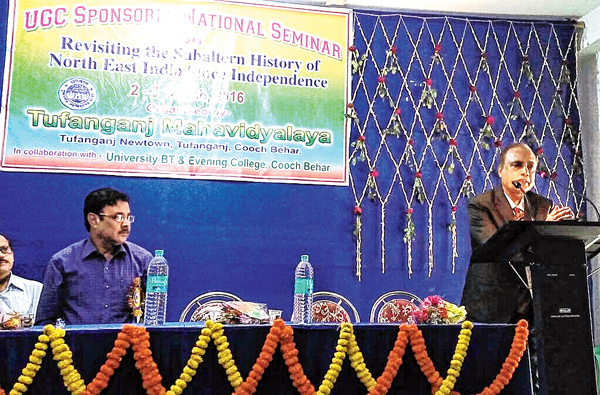 উত্তর পূর্ব ভারতের নিম্নবর্গীয় মানুষের ইতিহাস চর্চা আজকে বড় বেশি প্রসঙ্গিক হয়ে পড়েছে। পাশাপাশি উত্তর পূর্ব ভারতের নামনি অসমের সঙ্গে উত্তরবঙ্গের আত্মিক ও বৌদ্ধিক যোগাযোগ রয়েছে। ফলে নিম্নবর্গীয় মানুষের ইতিহাস চর্চা নিয়ে যে নানা বিতর্কের সূত্রপাত হয়েছে তার যুক্তিনিষ্ঠ পর্যালোচনা হওয়া দরকার। ‘সাব অল্টার্ন হিস্ট্রোগ্রাফি অফ নর্থ ইস্ট ইন্ডিয়া’ (উত্তর পূর্ব ভারতের নিম্নবর্গীয় ইতিহাস চর্চা) শীর্ষক আলোচনাচক্রে এমনটাই জানালেন মুখ্যবক্তা আনন্দগোপাল ঘোষ। অধ্যক্ষ দেবাশিস চট্টোপাধ্যায় স্বাগত বক্তব্যে জানান, উত্ত্তরপূর্ব ভারতের সঙ্গে প্রতিবেশি বলেই বিষয়টি আলোচনার পরিসরে এনেছে। সহবক্তা মাধবচন্দ্র অধিকারী প্রসঙ্গ সূত্রে জানান, উত্তরপূর্ব ভারতের সঙ্গে উত্তরবঙ্গের সংযোগ রয়েছে, সে দিক থেকে এই আলোচনাটি অর্থবহ। পঞ্চানন বর্মা বিশ্ববিদ্যলয়ে এ বিষয়ে আলোচনার চেষ্টা করছি। কারণ এগুলি পাঠ্যসূচির অন্তর্গত। তুফানগঞ্জ মহাবিদ্যালয়ের ইতিহাস ও অর্থনীতি বিভাগের যৌথ উদ্যোগে এই আলোচনাচক্রটি অনুষ্ঠিত হয়।