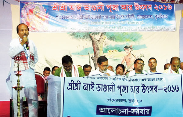 উত্তরবঙ্গে বিভিন্ন জনজাতির বাস। এই অঞ্চল লোকসংস্কৃতির ভাণ্ডার, জানালেন তুষারকান্তি চক্রবর্তী। তিনি নমুনা স্বরূপ চর্চিত গলায় মাছ ধরার গান, ছাদ পেটাইয়ের গান, মাঝিদের ভাটিয়ালী গান পরিবেশন করে আলোচনাসভাটিকে চিত্তাকর্ষক করে তোলেন। সভামুখ্য সত্যেন্দ্রনাথ বর্মনের মতে, ভাণ্ডানী পুজোকে কেন্দ্র করে রাজবংশী সংস্কৃতির পুনর্নির্মাণ সম্ভব। তাঁর কথায়, পুজোকে কেন্দ্র করে সংস্কৃতি চর্চায় যে ভাব বিনিময় ঘটে, তার প্রয়োজনীয়তা রয়েছে। মঞ্চে রমেশচন্দ্র অধিকারীর হাস্যরস সমৃদ্ধ গল্পগ্রন্থ ‘সিদলের সঞ্জীবনী’ প্রকাশ করেন সত্যেন্দ্রনাথ বর্মন। দ্বিতীয় দিন উৎসব মঞ্চে অনুষ্ঠিত হয় ‘পঞ্চানন বর্মা ও তাঁর সমাজ ভাবনা’ বিষয়ক আলোচনায় অংশ নেন বিধায়ক সুখবিলাস বর্মা, ধনেশ্বর রায়, সুধাংশু সরকার, মধুসূদন রায় সরকার প্রমুখ। আহ্বায়ক পরিমল বর্মন জানান, পুজোকে কেন্দ্র করে দু’দিনের এই আলোচনাসভা আমাদের লুপ্তপ্রায় সংস্কৃতি সম্পর্কে মানুষকে সচেতন করার একটি প্রয়াস। — অনিতা দত্ত