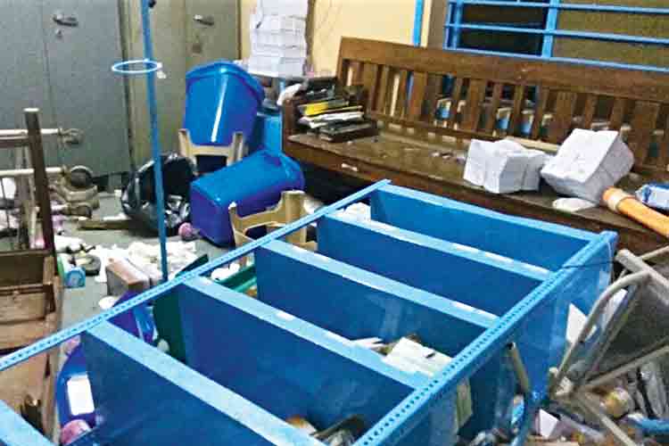 আক্রোশ: হেমতাবাদ ব্লক প্রাথমিক স্বাস্থ্যকেন্দ্রে ভাঙচুর। নিজস্ব চিত্র