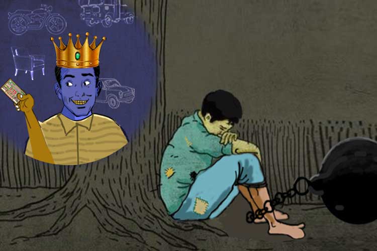 কিন্তু না। আর কোনও টিকিট আজিজকে ‘রাজা’ করেনি। উল্টে লোভে পড়ে আরও টিকিট কাটার নেশা বেড়ে যায় আজিজের। বছর খানেকের মধ্যে পুরস্কারের সব টাকা শেষ হয়। তার পর পরিবারের জমানো টাকা, স্ত্রীর অলঙ্কারেও হাত পড়ে। বাড়তে থাকে ধার। সুখের দিন দ্রুত শেষ হয়। এমনকি, তাঁকে দেখে এলাকার দু’এক জনও রাতারাতি বড়লোক হওয়ার স্বপ্নে লটারির টিকিট কিনতে ঘরবাড়ি, ব্যবসা— সব খুইয়ে বসেন বলে এলাকার লোকজন জানান।
