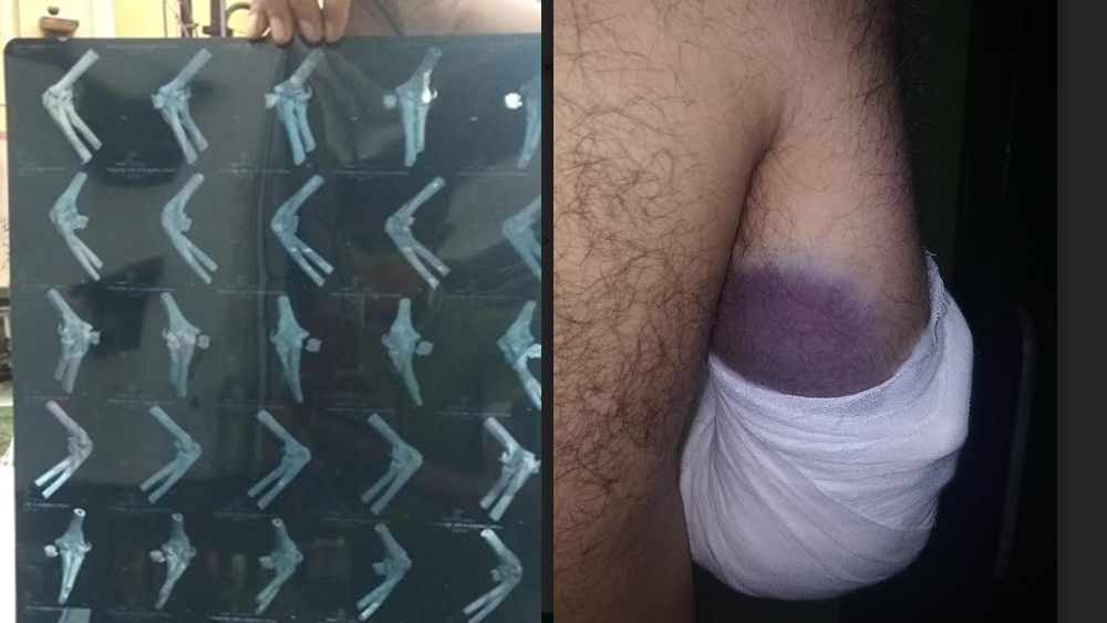 মারের চোটে হাতে কালসিটে পড়েছে অনুপম খাসনবিশের।