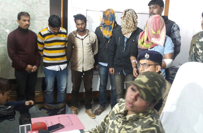 ধৃতদের নিয়ে সংবাদিক সম্মেলনে ভারতী ঘোষ। —নিজস্ব চিত্র।