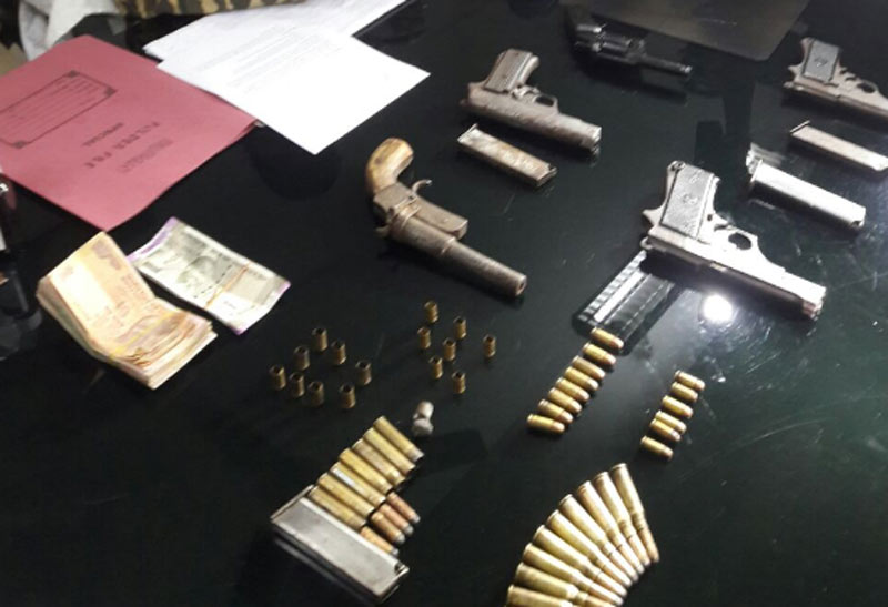 ধৃতদের কাছ থেকে উদ্ধার হওয়া অস্ত্রশস্ত্র। —নিজস্ব চিত্র।
